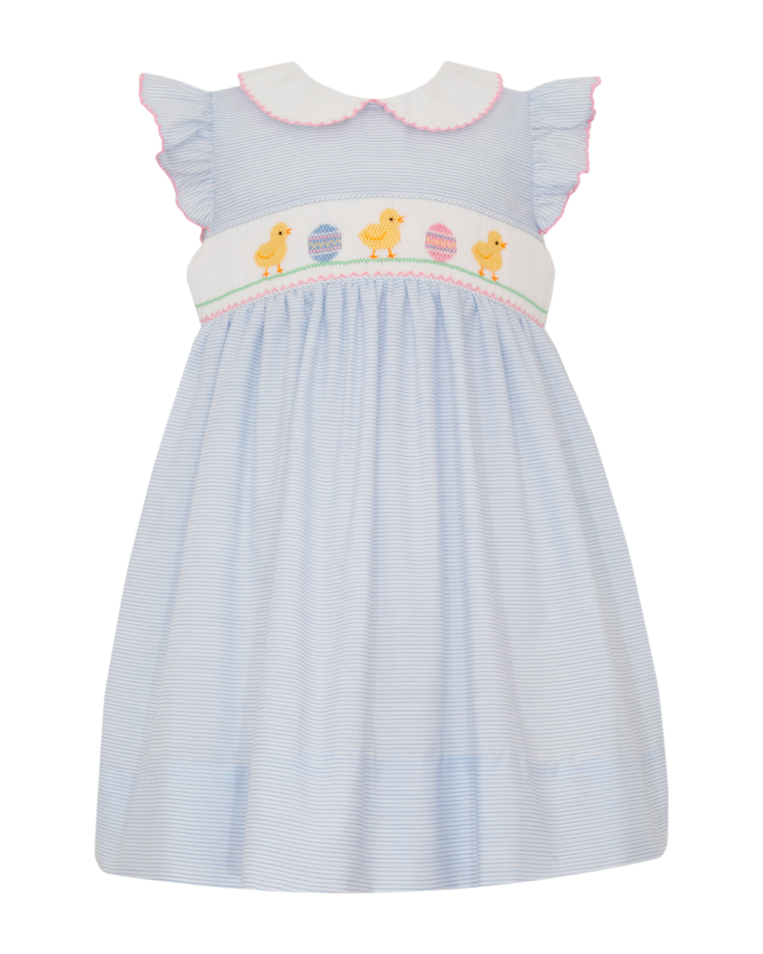 Smocked Easter Chicks Blue Stripe Bishop Dress