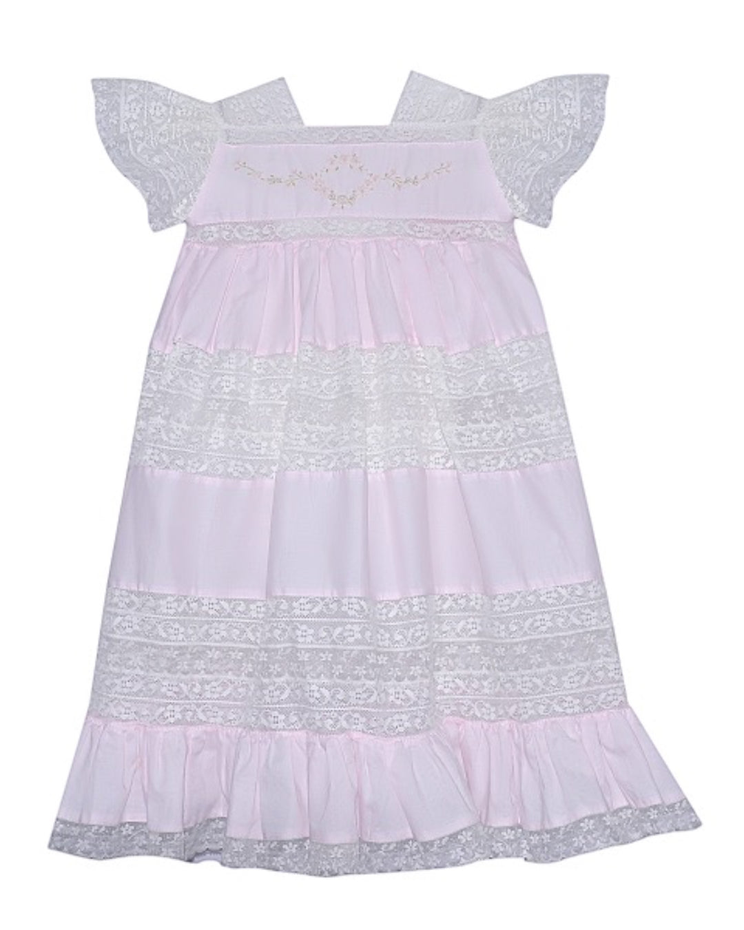 Mary Frances Ecru Lace Heirloom Dress: Pink