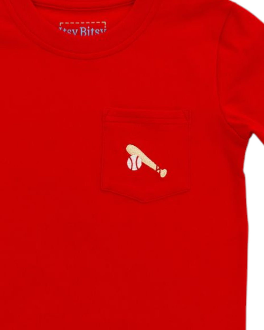 Pocket Embroidered Red Tee: Red