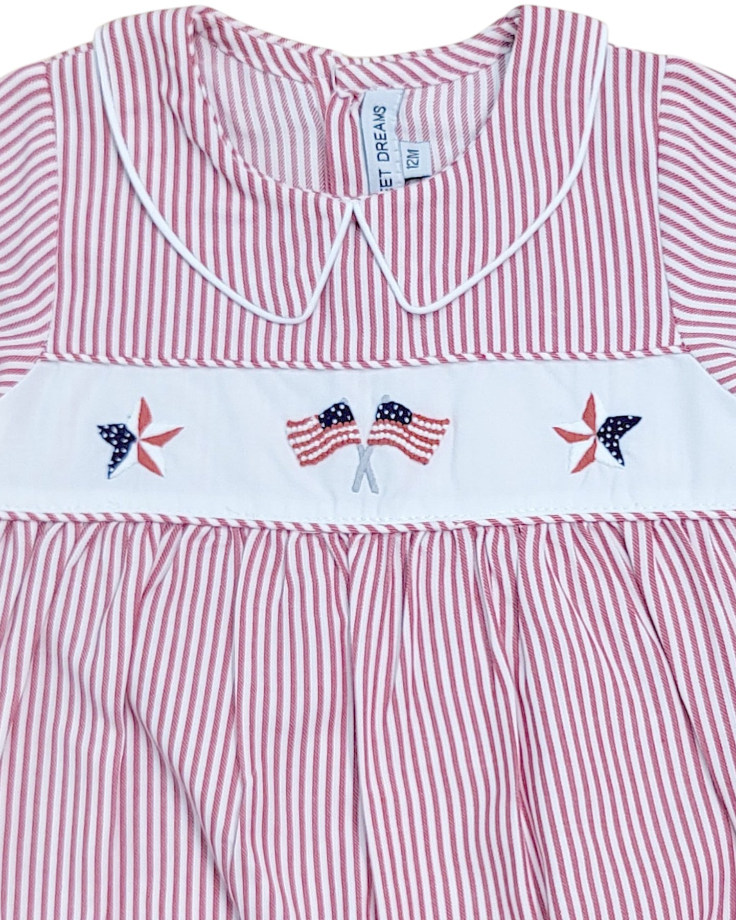 Flag and Star Embroidered Red Stripe Boys Bubble