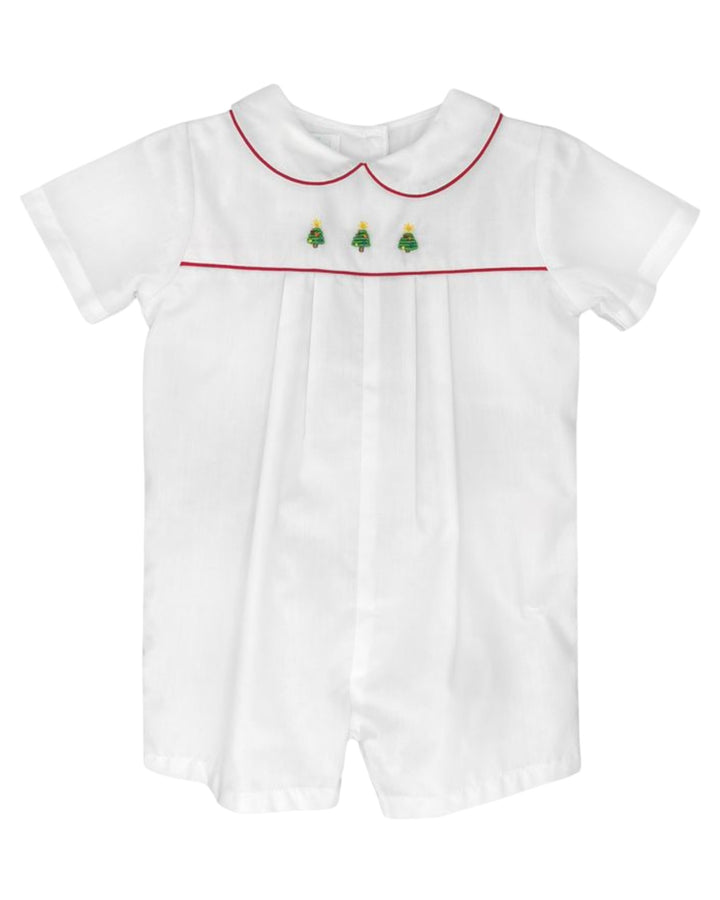 Dress your little one in this adorable Christmas Tree White Boys Romper, perfect for holiday photos and festive events. Featuring a charming design of three cute Christmas trees, this romper adds a playful touch to your boy’s Christmas outfit. Make holiday memories extra special with this cute and cozy outfit made just for the season.